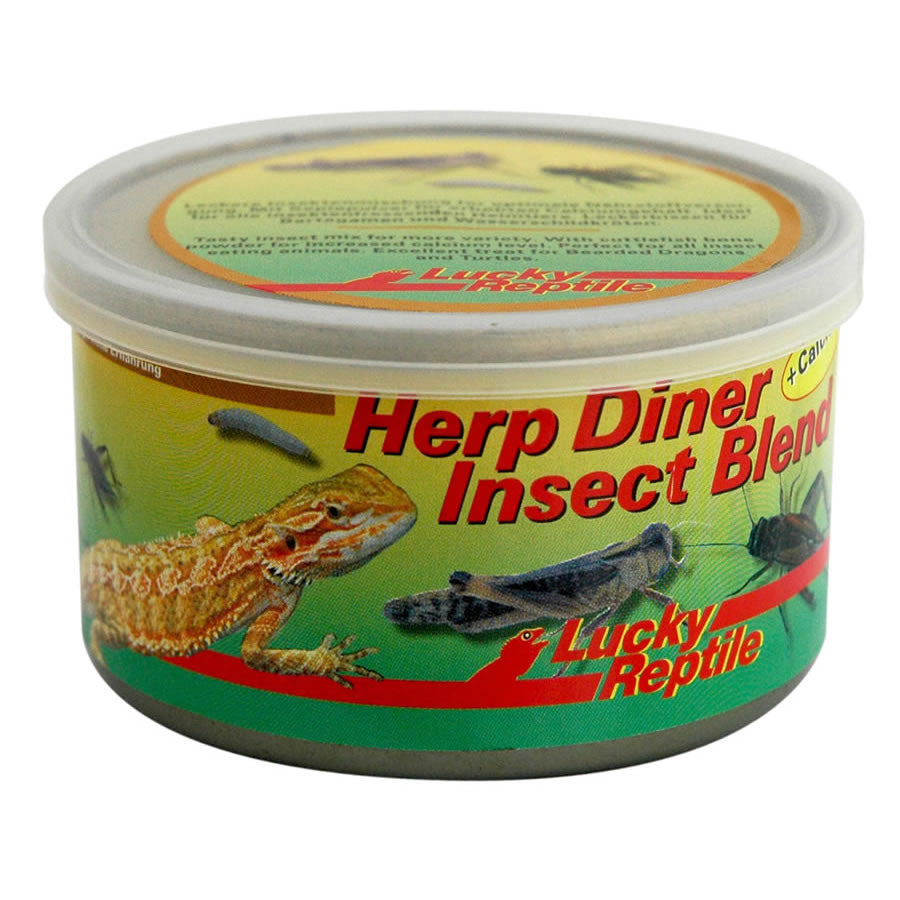 The Herp Diner Insect Blend contains large crickets medium locusts and bamboo worms offering a nutrious and varied food for many species of animal. The addition of cuttlefish bone powder ensures an increased calcium content and a positive calcium-phosphorus ratio which is not provided in many live insects. The special cooking process preserves the nutrients and ensures a good acceptance. Herp Diner Insect Blend is suitable for all insect eating reptiles and birds. It is perfect for bearded dragons and also larger turtles.