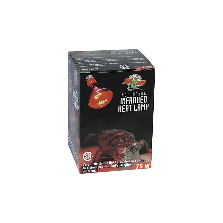 True red glass not painted or coated! Zoo Med’s spot refl ector focuses more heat into your enclosure and minimizes nighttime glare. Ideal 24 hour heat source for all types of reptiles amphibians birds or small animals. Very little visible light provided so as not to disturb your animal’s sleep patterns. Excellent for nocturnal viewing of all types of captive animals.